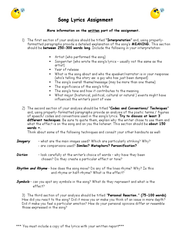 [Download 40+] Song Lyric Analysis Assignment
