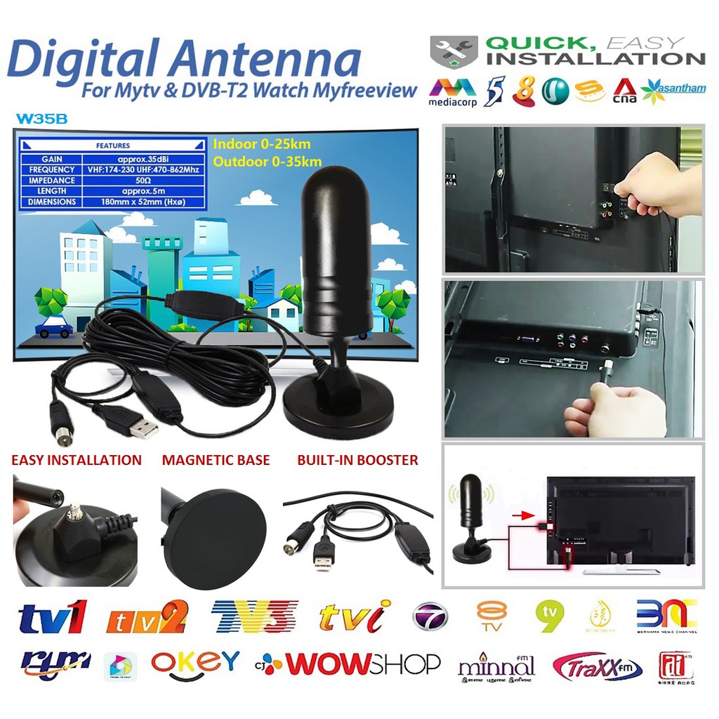 Hdtv Digital Tv Vhf Uhf Indoor Outdoor Tv Antenna 35dbi Shopee Malaysia